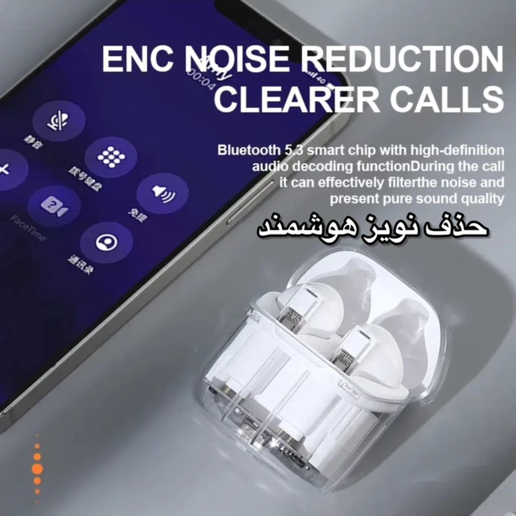 هندزفری بلوتوثی جت موبیکس مدل YX06 یک ایرپاد حرفه ای کاملا شفاف با دیزاین شیک و جوان پسند مناسب استفاده روزمره و مکالمه از برند جت موبیکس میباشد که دارای نسخه بلوتوث 5.3 بوده که باعث میشود کوچکترین تاخیری در مکالمه و گیم احساس نکنید و به نسبت قیمت خود ، امکانات مناسبی دارد.این ایرپاد به همه دستگاه های اندروید و آیفون و حتی لب تاپ امکان اتصال دارد و میتوانید به تمامی وسایل الکترونیک خود آن را متصل نمایید. از قابلیت های جذاب دیگر این محصول فعال بودن دستیار صوتی Siri برای گوشی های آیفون در این مدل میباشد .این ایرپاد با استفاده از سنسور لمسی خود میتوانید تمامی فرمان های قطع و اتصال تماس و متوقف کردن موسیقی و پخش مجدد و رفتن به موزیک بعدی و قبلی را انجام دهید. درگاه شارژ این محصول از نوع تایپ C میباشد.این ایرپاد دارای سیستم حذف نویز ENC نیز میباشد.