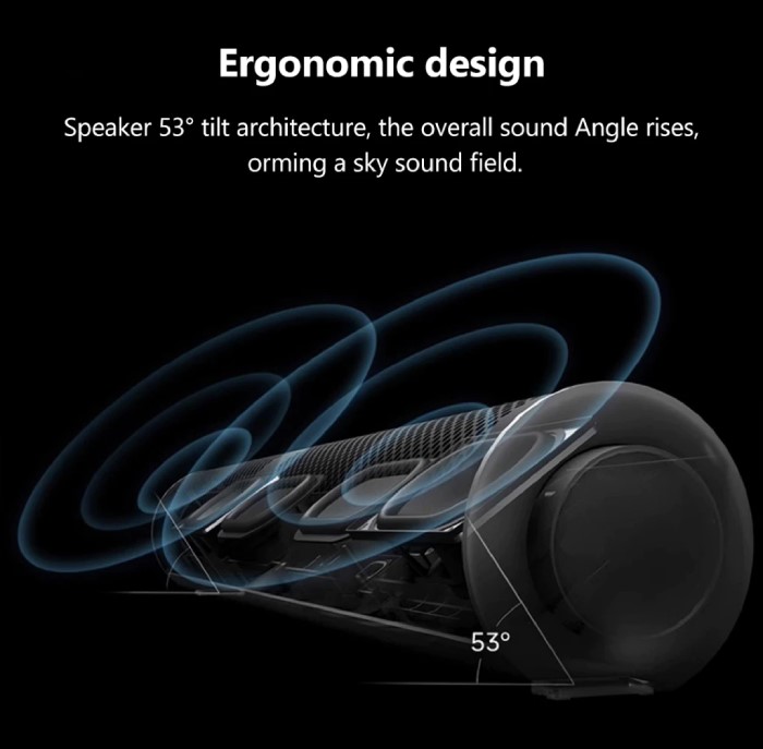 اسپیکر بلوتوث شیائومی دارای ساختار زاویه شیب 53 درجه است و در نتیجه می تواند یک میدان صوتی را تشکیل دهد. هنگامی که بلندگو در زیر مانیتور قرار می گیرد، صدا در این زاویه دقیقا به سمت صورت شما هدایت می شود که این حالت بهترین نوع پخش صدا برای اسپیکر رومیزی است.